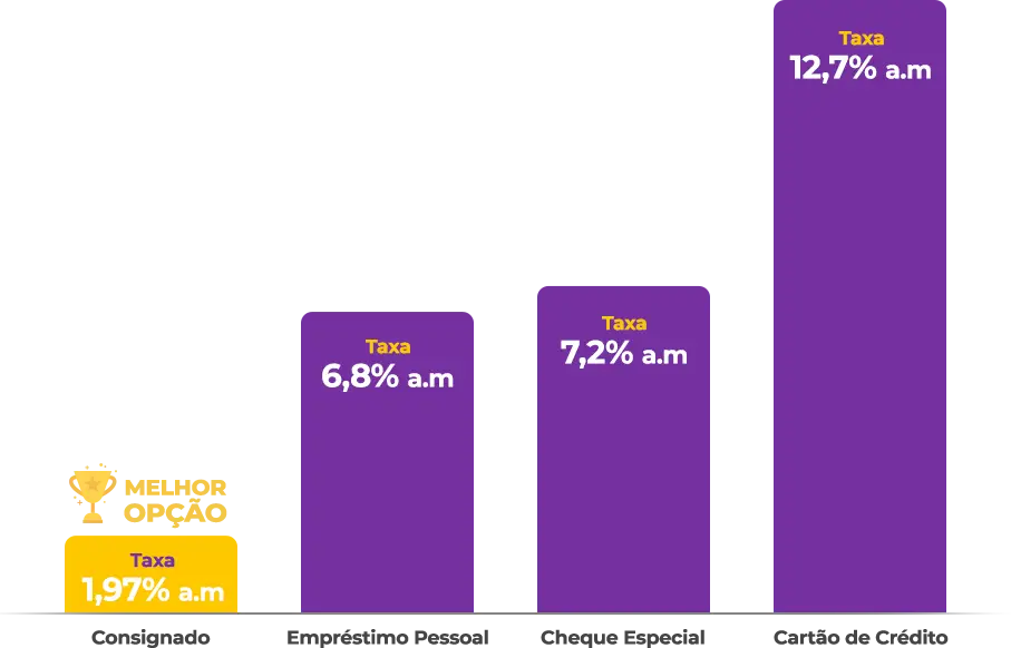 O consignado possui a menor taxa de juros do mercado e desconta diretamente no contra-cheque.
